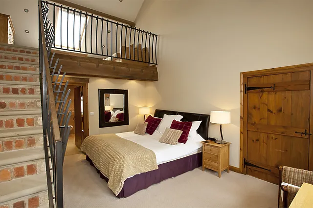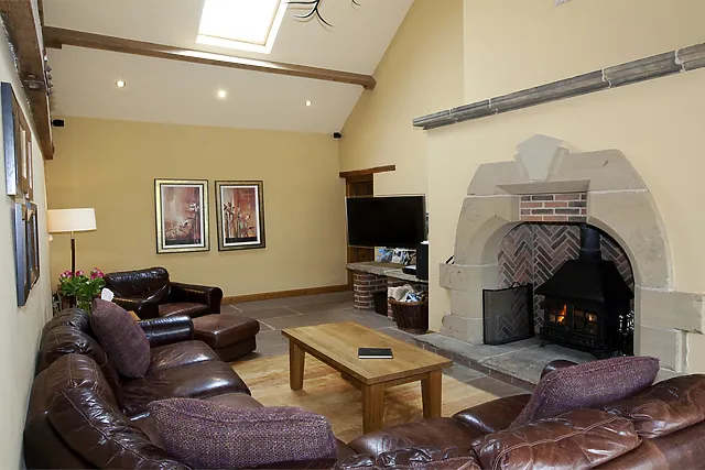 Inside, high ceilings and rustic details like wooden beams and exposed brickwork evoke the barn's heritage. A formal dining room with a gas flame effect fire provides a social hub, while the lounge invites you to unwind by the open fire with a film on the Smart TV.