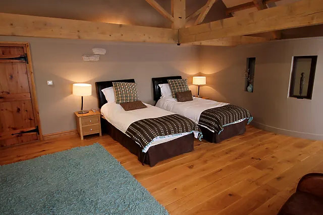 The property features four luxurious super-king bedrooms, all of which can be configured as twin beds upon request, ensuring flexible sleeping arrangements for guests.