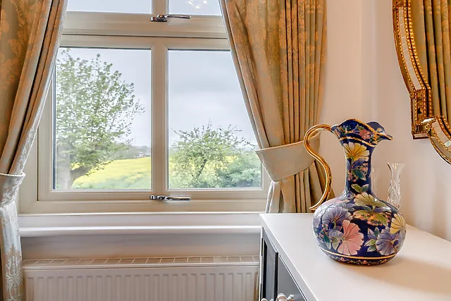 Indulge in the lavish comforts of the king-size bedroom with countryside views, and pamper yourself in the en-suite with a state-of-the-art walk-in shower.