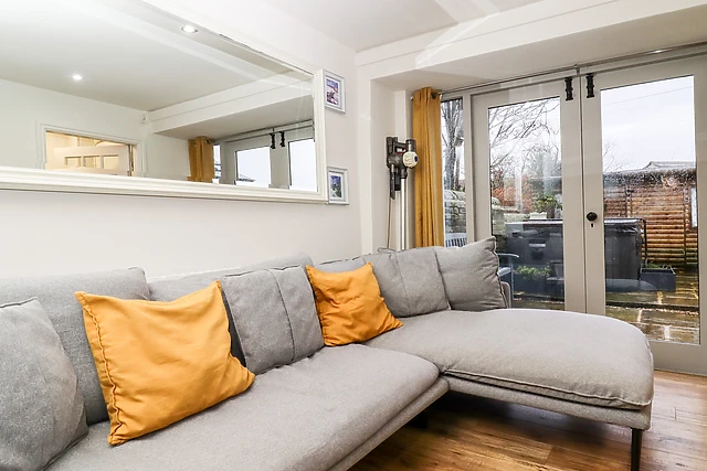 The allure of the enclosed patio is undeniable, with a luxurious hot tub waiting to soothe your senses after a day of exploration. When night falls, retire to the comfort of the king-size bed in the bedroom, complete with a walk-in wardrobe and an en-suite shower room.