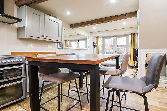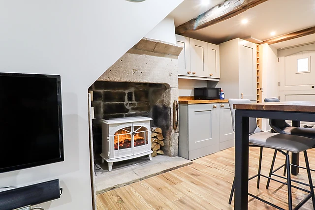 You'll be greeted by a tastefully appointed open-plan living space, where modern amenities blend seamlessly with charming character features. Relax beside the electric fire, indulge in your favourite shows on the Smart TV, and create culinary delights in the well-equipped kitchen.