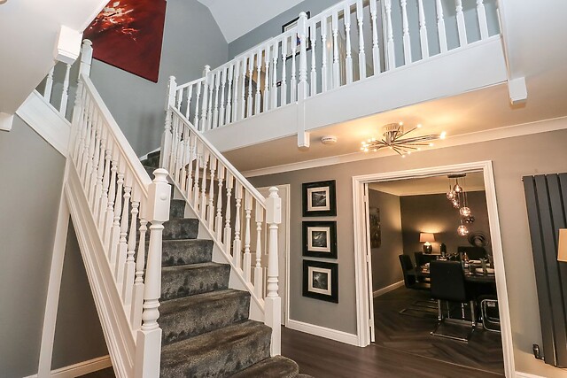 Enjoy al fresco dining with a barbecue and pizza oven, all just a short drive from the Saltaire World Heritage Site. Stepping through the front door, you are greeted by a striking central staircase and high ceilings that set the tone for the home.