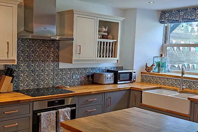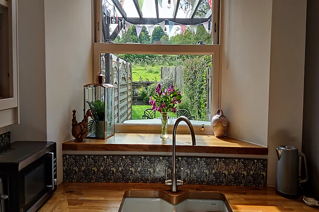 The kitchen is a well-equipped space where you can prepare delicious meals to be enjoyed at the dining table, awaiting dinner party natter and family bonding. Or if the weather permits, head outside to your own private garden, and indulge in a hearty meal under the parasol amidst views stretching to the nearby farm.