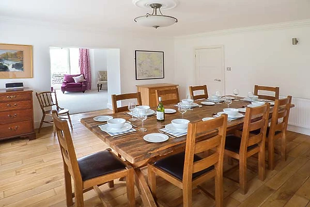 There is an outstanding, stylish kitchen with a Rangemaster cooker, a central island with a granite worktop, and a modern oven and microwave set at eye-level. Gather in the dining room and discuss the dayÂ’s adventures over delicious, home-cooked meals, before retiring to the sitting room boasting a cosy woodburning stove.