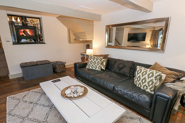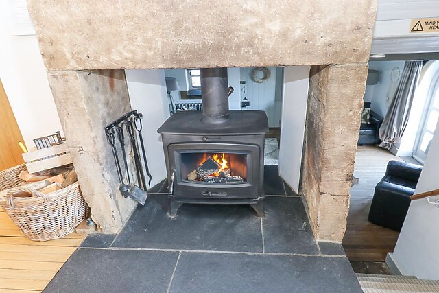 All the while, the double-sided wood-burning stove serves as a centerpiece, elegantly dividing the dining and sitting areas while radiating warmth and creating the perfect backdrop for memorable moments. Adjacent to the kitchen/diner, the lovely sitting room offers an inviting space to unwind, featuring a Smart TV with Sky for your entertainment.