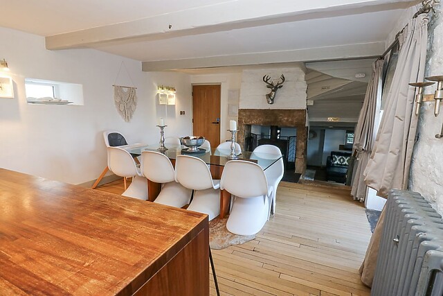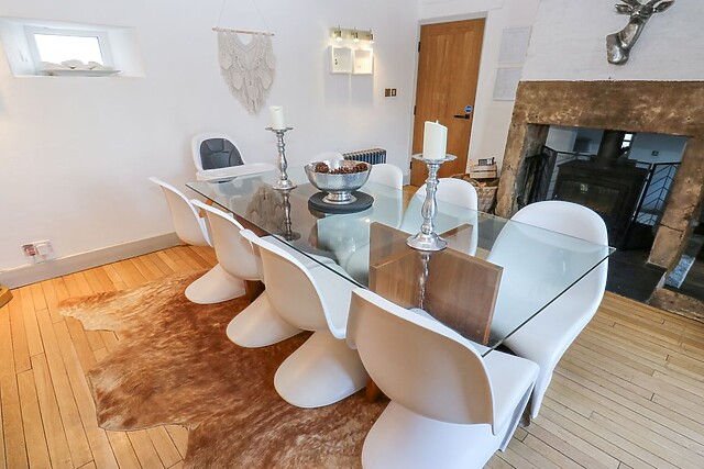 Inside this characterful cottage, you'll be greeted by a spacious kitchen/diner, fully equipped for all your culinary needs. Here, you can gather around the dining table seating eight, and enjoy hearty feasts, sharing stories of your day's adventures.