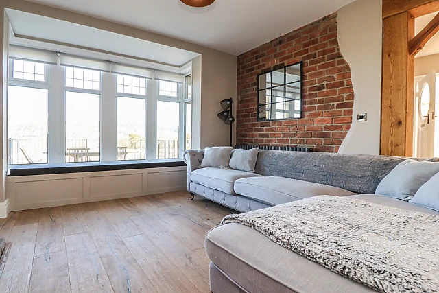 Step into the conservatory to bask in natural light and access the balcony, which offers stunning views of the rural landscape.