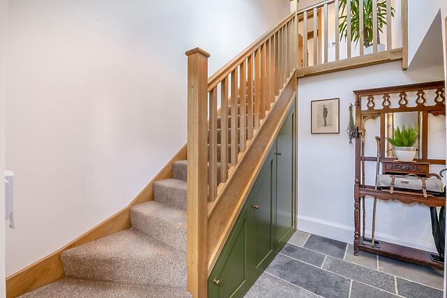 Brimming with charm and featuring a sloping ceiling and a large Velux window, the contemporary family bathroom provides everything you need to feel refreshed. Outside, the large garden offers something for everyone to enjoy; dine alfresco on the patio, play garden games on the lawn or unwind in the hot tub.