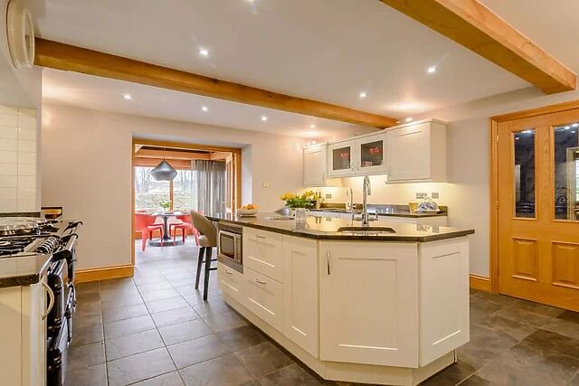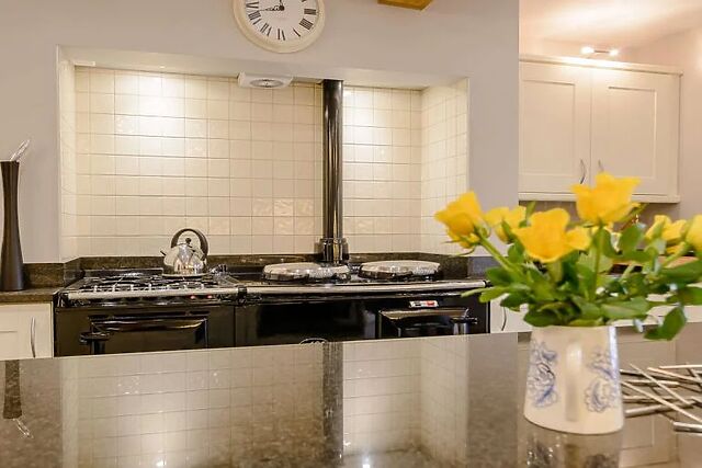 The property boasts a contemporary country-style kitchen with an AGA, perfect for preparing a sumptuous meal to enjoy in the elegant dining room.
