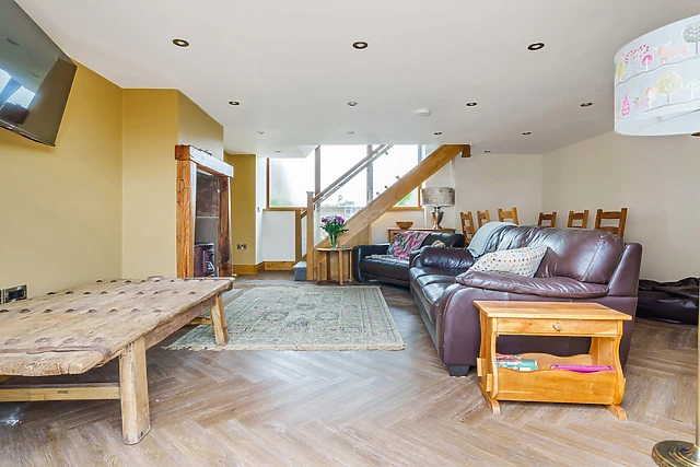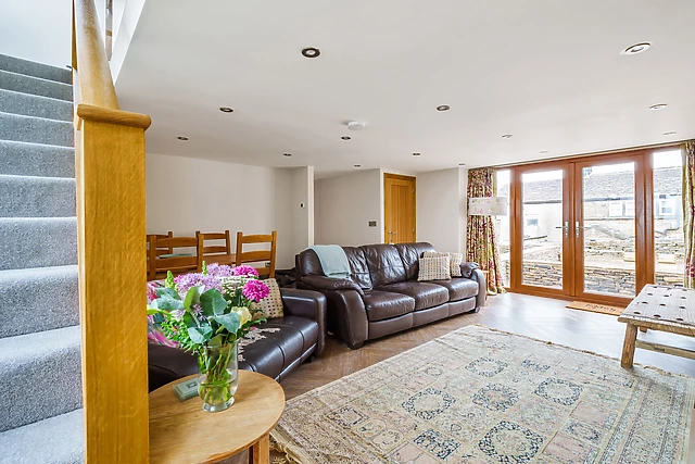 After a day of walking, head into the lounge and get the woodburner roaring before putting your feet up and pondering on the day’s adventures. Steps down lead to the kitchen where you can perch at the breakfast bar and keep the designated chef company whilst they prepare a delicious meal, before moving to the dining table to enjoy a tasty supper.