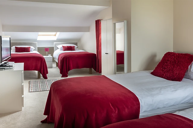 One is a family room with four single beds (can be twin and super king-size double on request). One of the king-size rooms comes with the added luxury of a contemporary shower room and walk-in wardrobe.