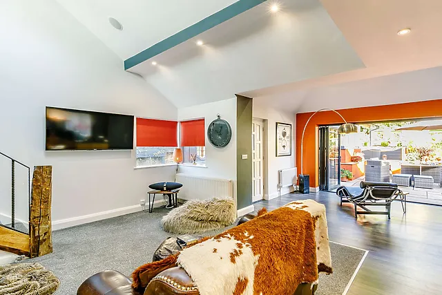 The open-plan lounge/kitchen/diner creates a fabulous social space, while the enclosed garden offers a serene spot for al fresco dining.