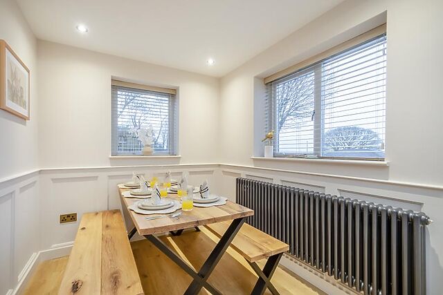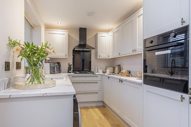 Walk through to the lounge to take a seat on one of the inviting sofas, ready to catch up on the news of the day or perhaps find your current boxset on the Smart TV. This room flows easily into the kitchen/diner, where you will find everything you need to help you cater for your party during your stay.