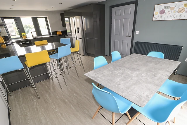 The open-plan kitchen/diner is a culinary artist's dream, equipped with modern amenities.