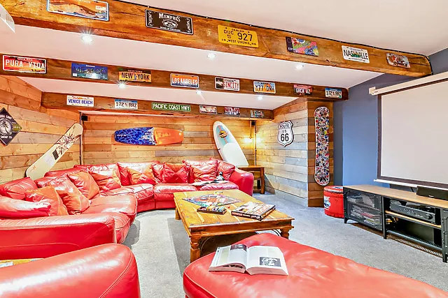 Guests can enjoy a cinema room with a projector for movies and sports, as well as a smart TV and games consoles in a unique galleried seating area.