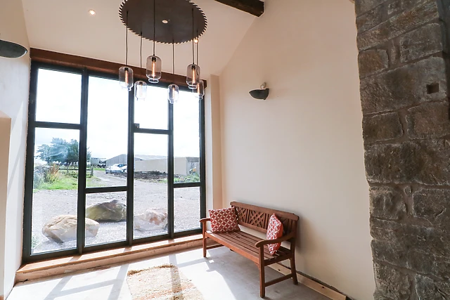 Set the large dining table set on a beautiful tiled floor to enjoy dinner together and toast to your fabulous holiday home! A snug sitting area awaits after dinner to sink into the sofas and catch up on the day's adventures whilst the woodburning stove gently warms the room.