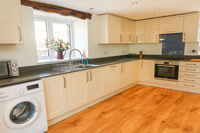 Over two floors, the barn boasts a light, airy sitting room with log burner, comfy sofas and French doors out onto the patio and garden. The kitchen is delightful and well-equipped, including a collection of appliances, and underfloor heating to warm those cooler nights.