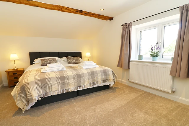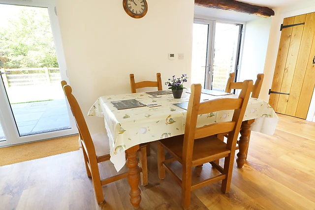 The dining area looks over the patio and garden, and benefits from patio doors which can be opened on a sunny evening bringing the garden into the house. Upstairs discover the two bedrooms, one with a super king-size double bed and an en-suite shower room, whilst the second features a superking size that is zip/link and can be twin beds.