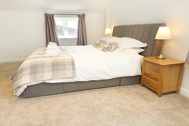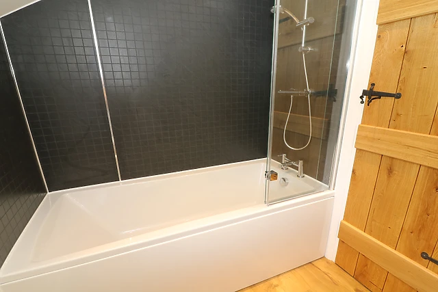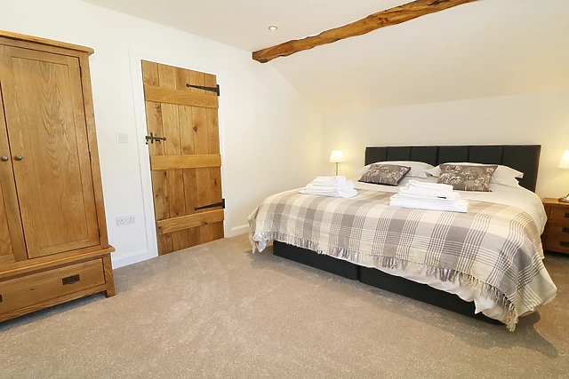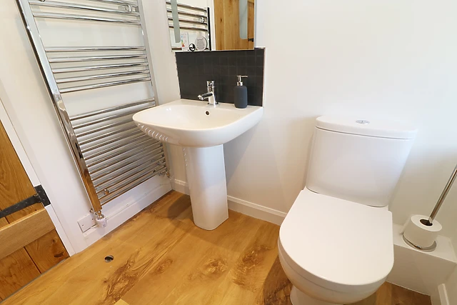 There is also a lovely family bathroom. The barn boasts an open grassy garden and patio with a hot tub in a secluded corner, the perfect place to relax after a day exploring all that the local area has to offer.