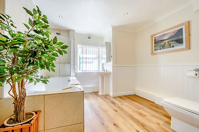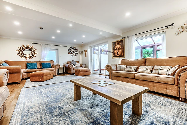 There is a spacious sitting room in this Bardsea cottage, with an adjoining conservatory/summer room and doors to a private garden. There is also a spacious master bedroom with en-suite shower room; a further five well laid-out bedrooms and an unusual first floor farmhouse-style kitchen with large table and a small wooden balcony area.