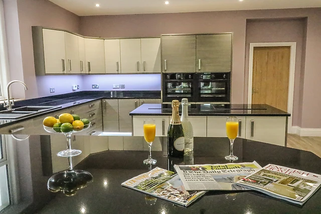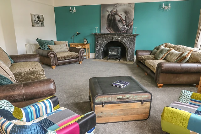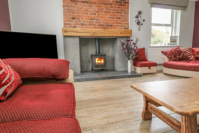 A large modern, open plan kitchen with wall mounted flat screen TV and a lovely seating area with cosy wood-burning stove, feature fireplace and patio doors provide another great place to sit and talk about your day and to prepare a family dinner. The main dining area overlooks the mature garden area and also provides small secluded seating areas to get away from it all and catch up with an old friend or family member.