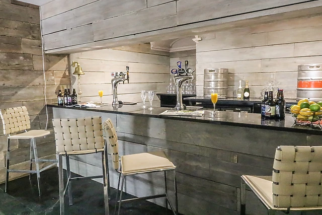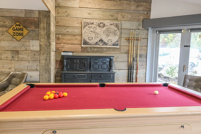 The main hallway leads through to a spacious lounge with feature fireplace, high ceiling with detailed coving. The main bar area boasts a pool table, large screen TV and is a place to all get together to have a few cooling drinks from the wine coolers, open a few beers and create your own bar room atmosphere (The bar pumps are for decorative purposes only).