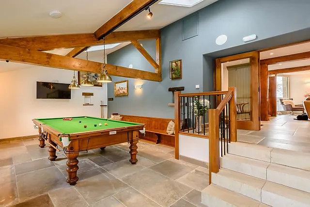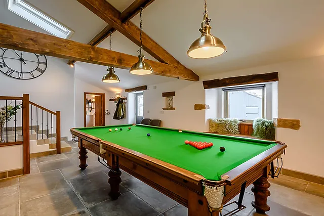 For entertainment, guests have access to a snooker room, perfect for family games nights, and Smart TVs in the lounge, snooker room, and all bedrooms.