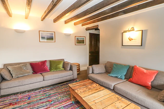 The main entrance leads guests into the first sitting room. Set out around a cosy woodburning stove, this is a great place to cuddle up with a good read.