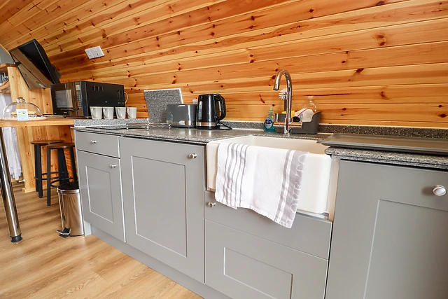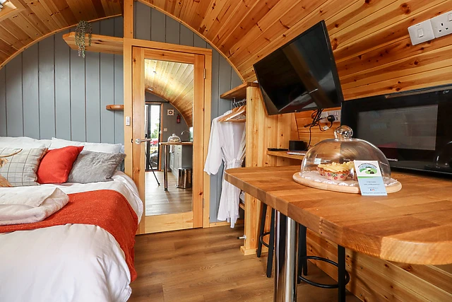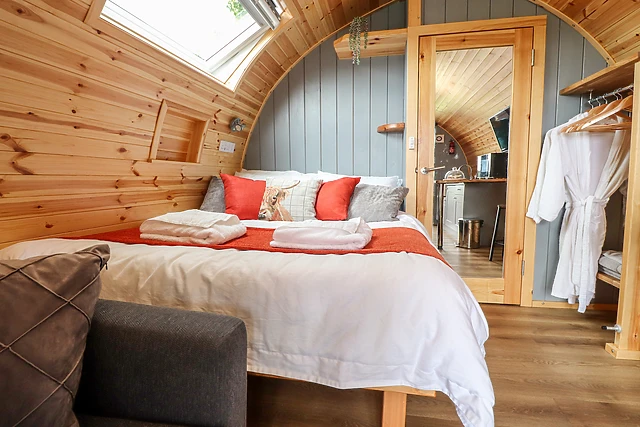 The pod is equipped with electric underfloor heating, providing a warm and cosy atmosphere throughout your stay, regardless of the weather outside.
