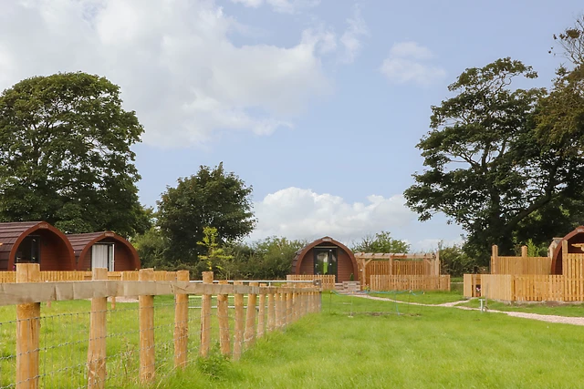 The pod also features a contemporary shower room, underfloor heating, and a front garden with a BBQ and outdoor furniture, offering a delightful alfresco dining experience.