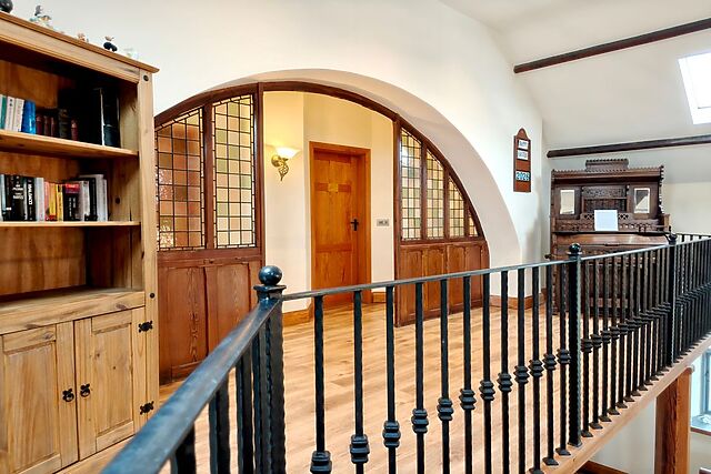 Built in 1891, this former chapel still bears its original character, and that sense of history settles around you the moment you step inside. As you enter the open-plan living space, the full-height ceiling rises above you, offering an immediate feeling of openness while the preserved altar rail and lectern gently anchor the room to its past.