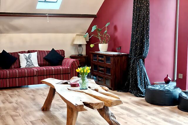 Whether preparing breakfast or gathering for an evening meal, the room encourages shared moments. The dining area is ideal for lingering conversations, while the sitting area invites you to unwind beside the woodburning stove after a day exploring.