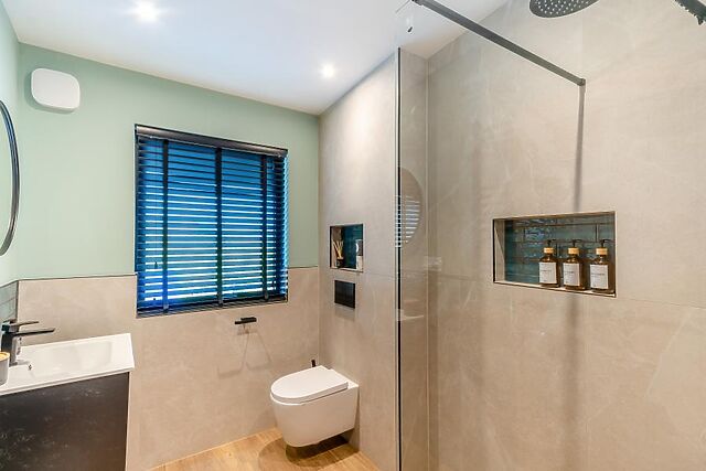 Choose between the king-size bedroom with a zip-and-link bed that can become 2'6" single beds and an en-suite bathroom or the super-king bedroom. A sleek family shower room with a spacious walk-in shower rounds off the accommodation.
