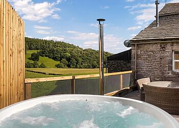 The Old Sheep House is a stylish detached house with two hot tubs and exceptional countryside views, located in the village of Langcliffe, North Yorkshire. Malham 7.4 miles; Skipton 16.6 miles; Skipton 30.3 miles.