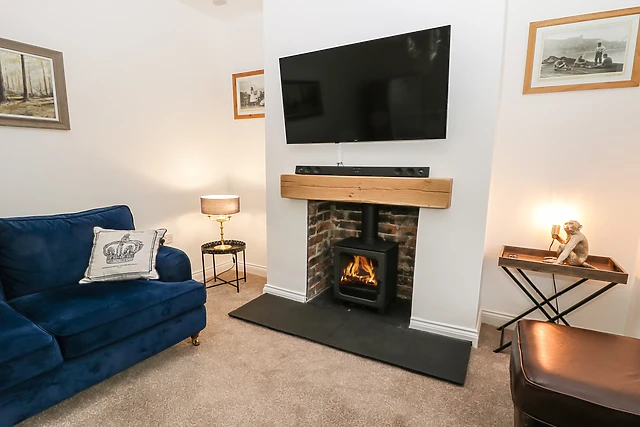 The property boasts a cosy sitting room with a woodburning stove, ideal for snuggling up during cooler evenings, and a fully equipped kitchen/diner that opens onto an enclosed patio garden.