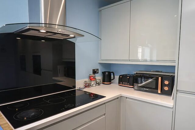 The kitchen blends traditional style with modern practicality, boasting quartz worktops, dual ovens, a five-ring induction hob, and a dishwasher, perfect for preparing hearty breakfasts before a walk along the beach. Across the upper floors are six thoughtfully designed bedrooms, three with en-suite shower rooms.