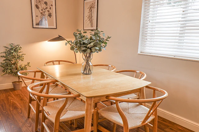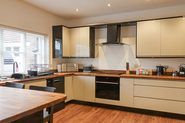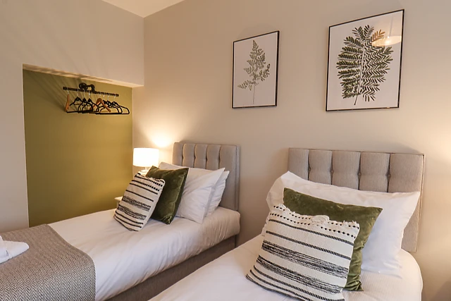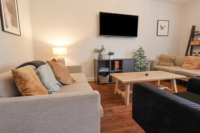 The heart of the home is the kitchen/diner, where you can chat and cook up a storm with loved ones, before gathering in the sitting room for a movie night on the sofa. As you ascend the stairs, you will be welcomed by two further bedrooms, a double with TV and en-suite shower room, and a second double, each beautifully-presented and with plenty of storage for your belongings.