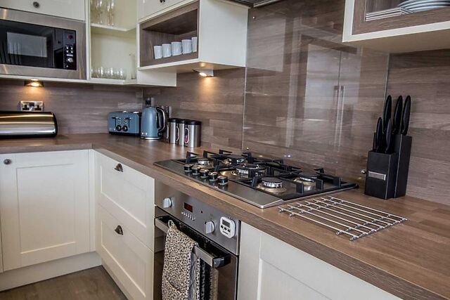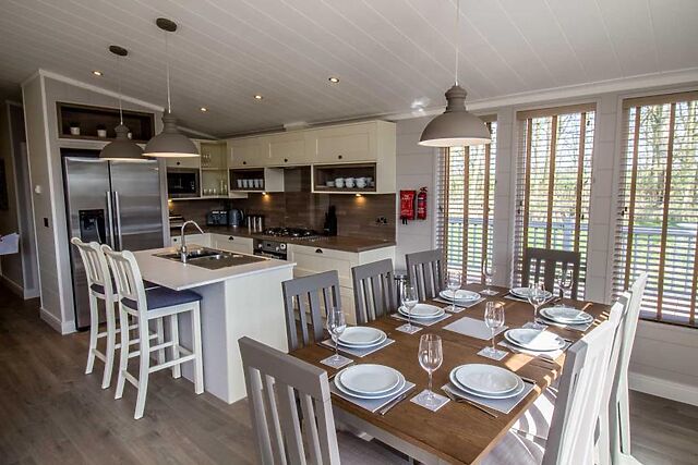 The kitchen comes fully equipped for all your self-catering needs and includes a handy island breakfast bar. Adjacent to the kitchen is a stylish dining area with ample space for the whole group to enjoy meals together.