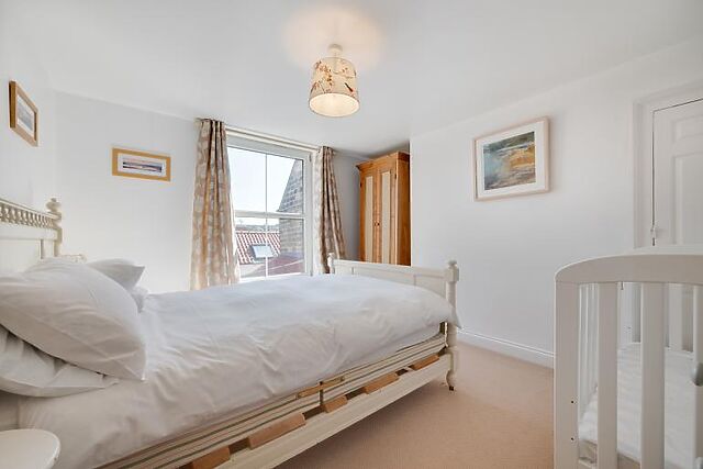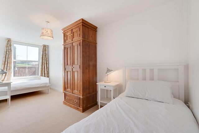 On the first floor is a bathroom and two bedrooms – a double with an en-suite and a twin room. Climb the cottage-style stairs to reach two more bedrooms – a single and a double.