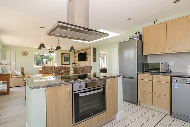 The cottage is well-equipped with modern conveniences, including an electric oven, hob, microwave, fridge/freezer, dishwasher, broadband, and WiFi, ensuring a comfortable and connected stay.