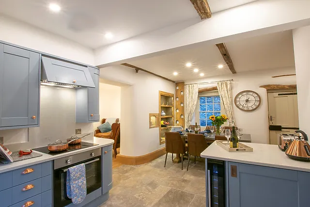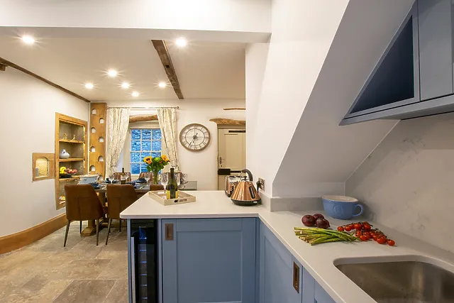 The barn boasts a wood burner to cosy up in front of during cooler months, and a fully equipped kitchen/diner to create and enjoy meals together. With underfloor heating throughout and a courtyard ideal for your furry friends, Boo Barn ensures a comfortable stay for all.