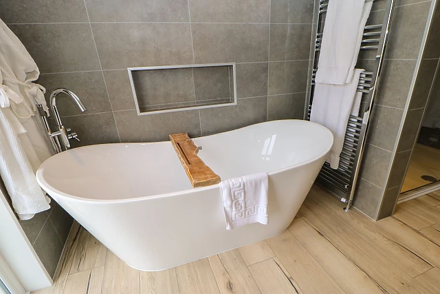 After dinner, kick-back and relax on the plush sofa as you decide on a film to watch as the evening’s entertainment. After a day of hiking and exploring, make your way to the bathroom, where you can enjoy indulgent soaks in the beautiful freestanding bath or a quick freshen up in the large walk-in shower.