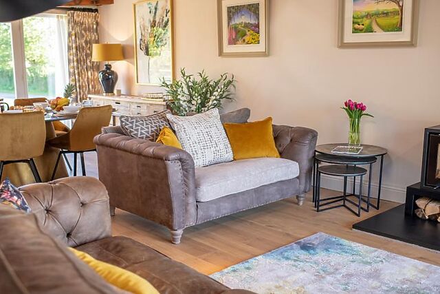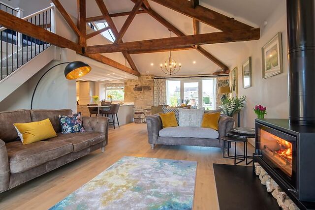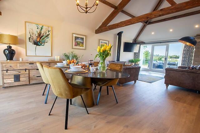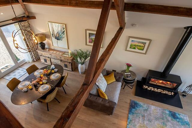 Inside, exposed beams and a wood burner infuse the space with character, while the stylish interior ensures your every need is catered for. Whether you're toasting marshmallows over the firepit or soaking up the countryside views from the patio, Brewery Barn promises a memorable and relaxing break.