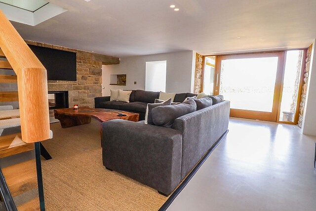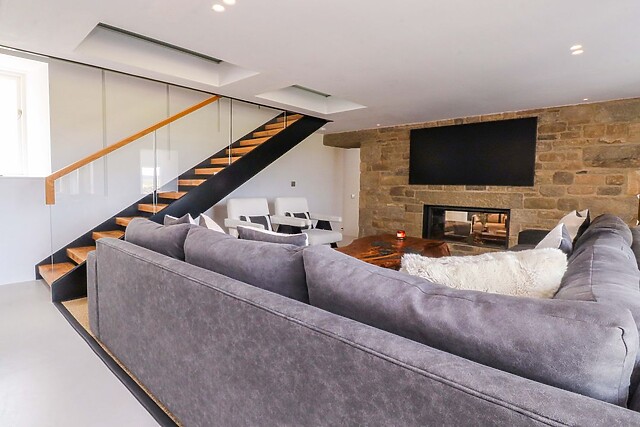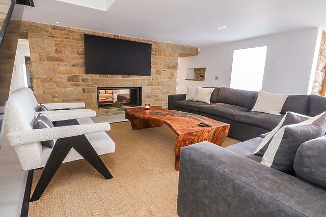 Whether you're preparing breakfast in those active mornings or sitting down to a candlelit dinner at the grand dining table, it’s a space made for connection and laughter. The large sitting room offers the warmth and charm of an alpine lodge, with a striking ski-chalet style log burner and, sumptuous corner sofa.