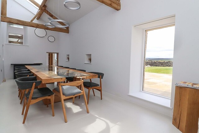 From the moment you arrive, you’ll be greeted with exceptional views and captivated by its beautifully preserved character, with exposed rustic beams running throughout bespoke interiors that nod to its heritage while embracing modern style. Step inside and you’re greeted by a spectacular open-plan kitchen with top of the range appliances and separate dining area, where the classy design meets practicality.