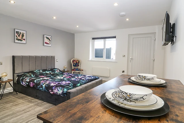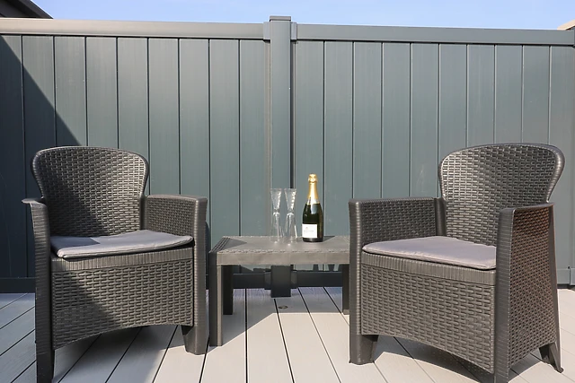 Step outside to your private decking, where a hot tub beckons you to unwind under the stars. This intimate setting ensures privacy and comfort, making it an idyllic spot to spend quality time with your significant other.