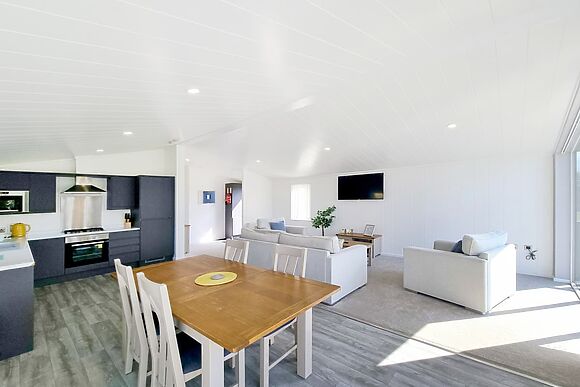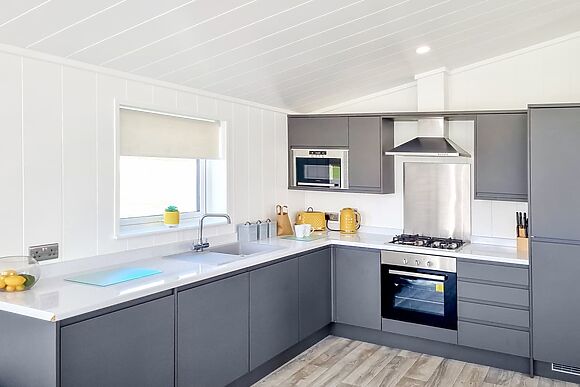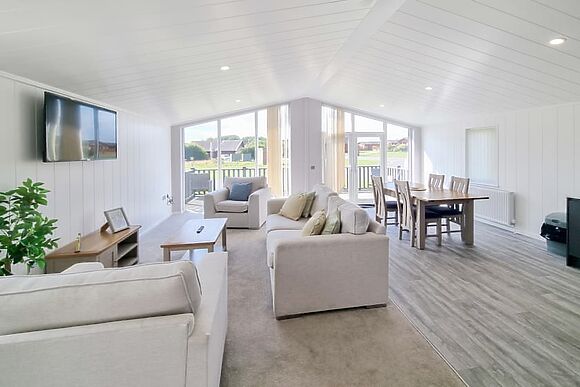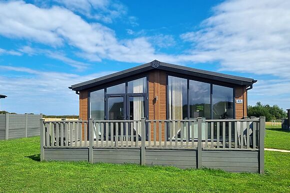 Two kingsize bedrooms and a private hot tub for four on the decking make this a genuinely good couples retreat. The park is peaceful and set in 37 acres of countryside. The coast is 3 miles away for evening walks. The Spotted Duck café on site means you don't even need to leave the park for a relaxed lunch together.