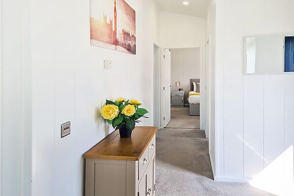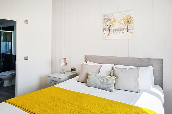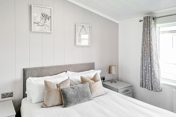 The lodge sleeps 4 across two bedrooms both with kingsize (5ft) beds. Bedroom 1 has an en-suite shower and toilet.