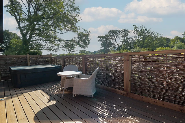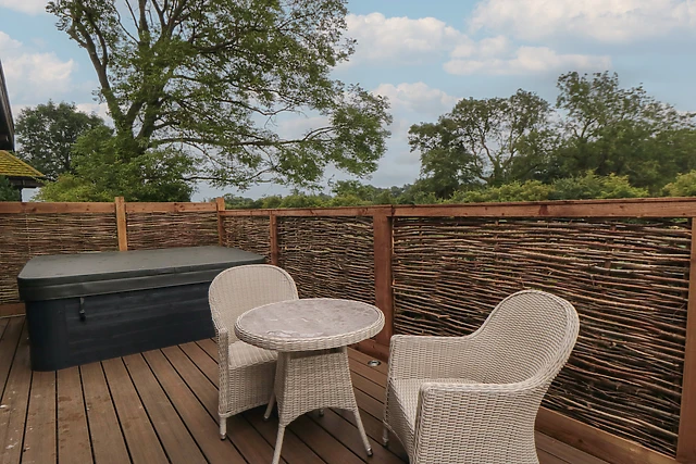 Head out onto the decking where you can enjoy the distant countryside views, as well as alfresco dining, and here there is also a hot tub, ideal for a soak under the stars. When sleep calls and the evening rolls in, retire to the stylish king-size bedroom, equipped with a Smart TV, plenty of storage, and a charming en-suite bathroom with the options of a roll-top bath and walk in shower.