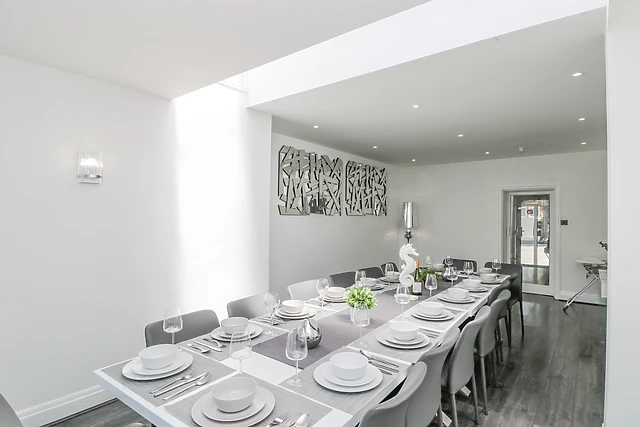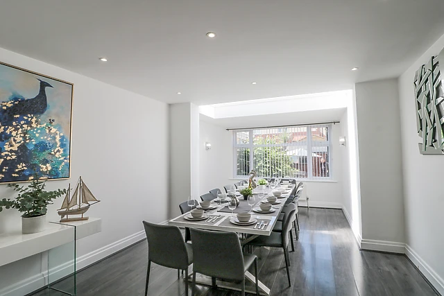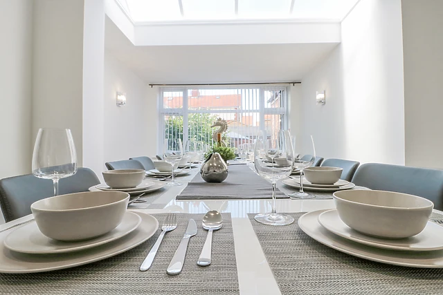 Upon arrival, you'll be pleased to discover five off-road parking spaces, along with additional on-street parking nearby. After parking up, make your way inside to be welcomed by a sumptuously decorated sitting room, where you can grab a seat on the velvet sofas and unwind with a glass of wine in front of the TV.